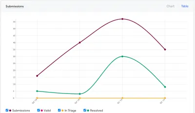 Consolidation — We currently have our Bug Bounty run through a platform, while we also have a Google Form and email address for vulnerability disclosure. This means the latter don’t go through the same triage process, and we have to track reported vulnerabilities in three places. Having a single funnel for reporting (for a bounty or not) will make things easier for the program and more consistent for teams that are part of it.