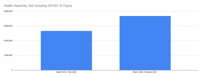 This increase in certain needs, however, didn’t reduce traffic for other needs. Over the past year, searches for forms were just as frequent as the year prior. Similarly, within the health search data, we can see that about 50% of searches for last year were related to COVID-19, but that general health topics like diabetes, high blood pressure, and mental health saw an increase from 2019 to 2020 as well.
