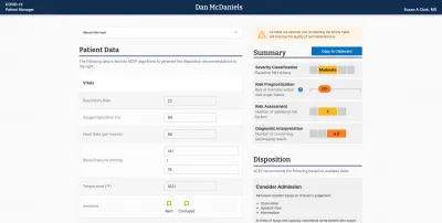 To address this challenge, we developed the COVID-19 Patient Manager, a clinical decision support tool for emergency medicine physicians. This tool presents patient-specific recommendations from the American College of Emergency Physicians (ACEP) in a digital format. We began piloting the COVID-19 Patient Manager this summer, and early user feedback has been very positive.