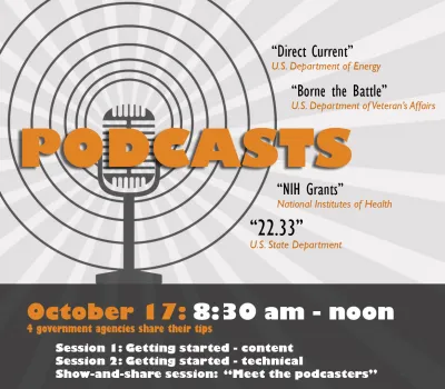 SocialGov’s fall meeting is bringing together four top experts in federal podcasting to talk about what it takes to put together a professional and engaging podcast, and tips to grow your audience.