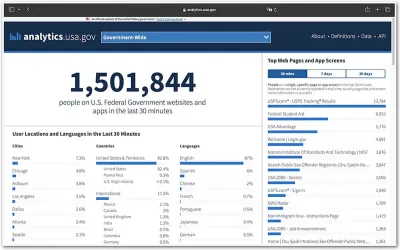 Everyone, including the public, can visit analytics.usa.gov to see how many people are on government websites right now. Explore this dashboard for a governmentwide view of how the public interacts with federal websites.